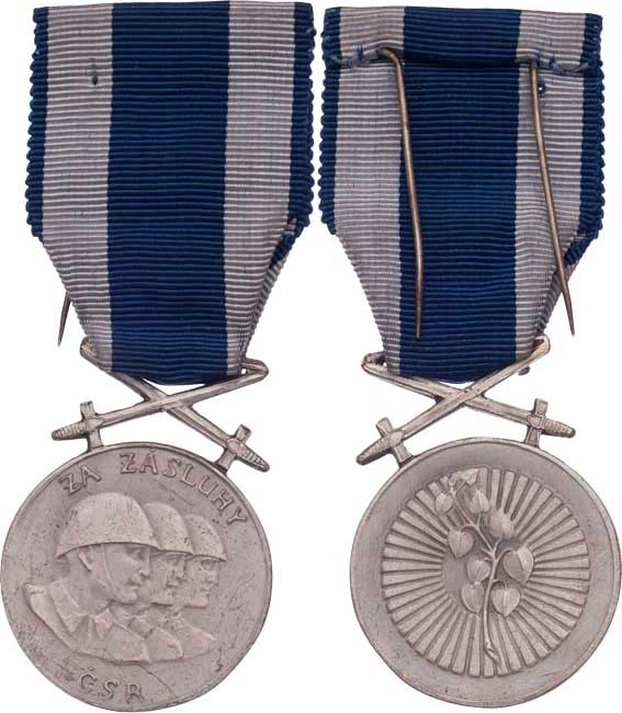 Stříbrná vojenská medaile Za zásluhy - pražské vydání, postříbřený bronz, VM.13-I-B, původní stuha
