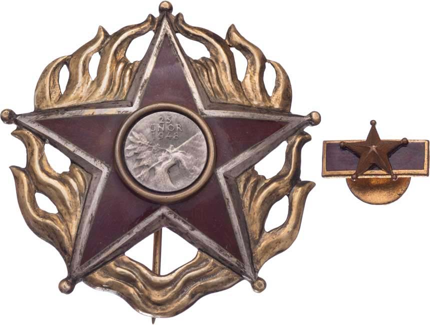 Řád 25.února - I.třída, VM.28-1, Punc. KK (Karnet a Kyselý) Ag900, AE miniatura do klopy, původní etue
