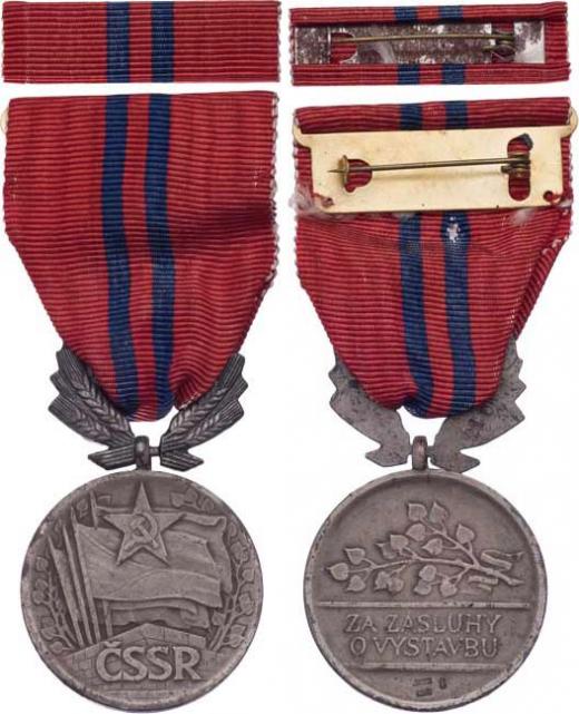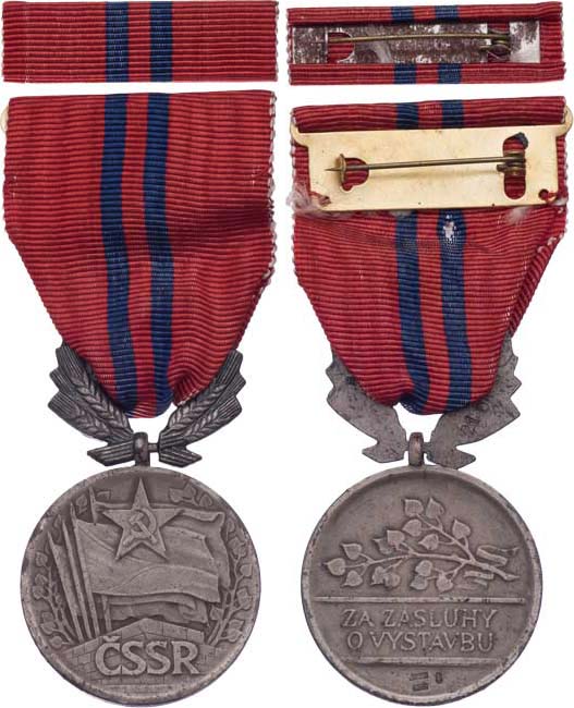 Medaile Za zásluhy o výstavbu ČSSR, VM.33-2, číslov. (21004), Punc. Zukov Ag925, původ. stuha, malá stužka, poškozená původní etue