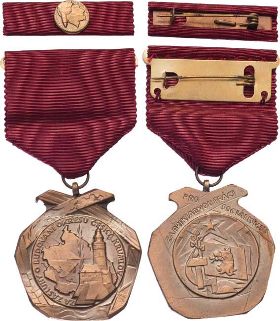 Český Krumlov - medaile Za zásluhy o budování okresu, Nesign., bronz 35x35 mm, původní stuha, stužka, etue a průkaz s udělením "Ludvík Frýdl, číslo matriky 271"