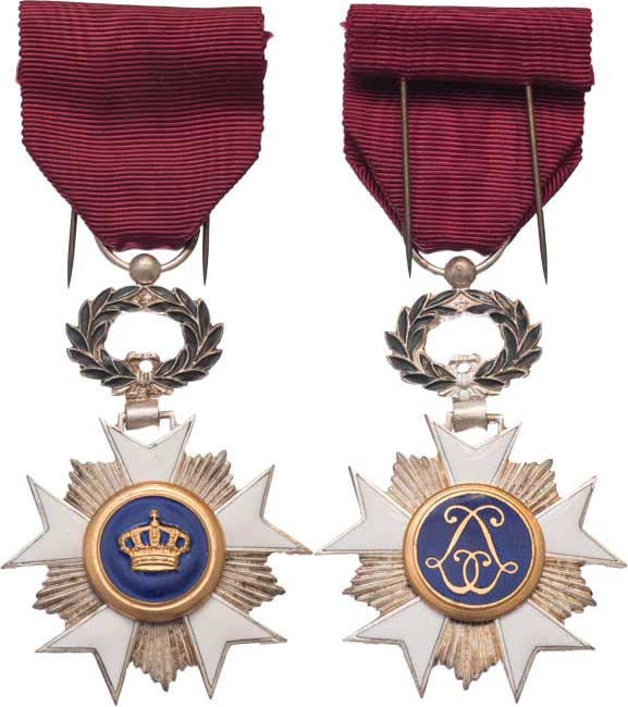 Řád belgické koruny (založen 1897) - rytíř, BB.208, podobný jako VM3.157c, Nepunc., původní stuha