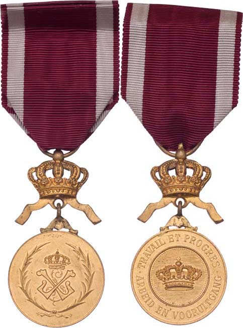 Řád belgické koruny - typ 1951 - zlatá medaile (dvojjazyčná), BB.212, zlacený bronz, původní stuha