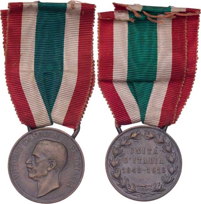 AE pam. medaile Sjednocení Itálie 1848/1918, BB.364, hlava zleva, Sign.v reversu "CBC", původní stuha