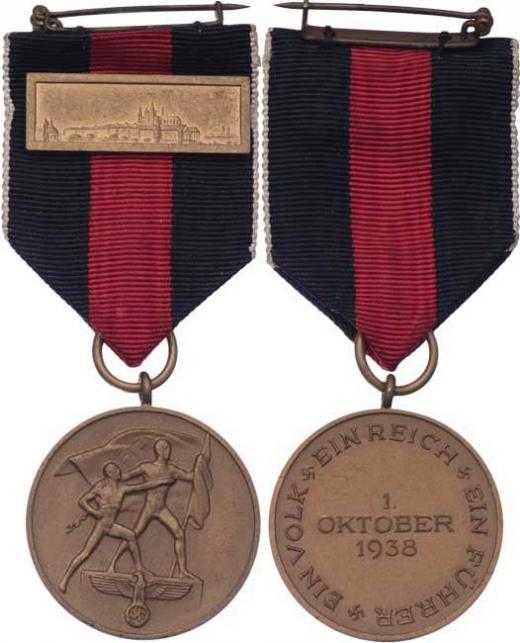 Medaile Za obsazení Sudet 1.X.1938 se sponou "Pražský hrad" na původní stuze, BB.491, DN.6.02.27.b, Nimmergut.274, Char.33.b