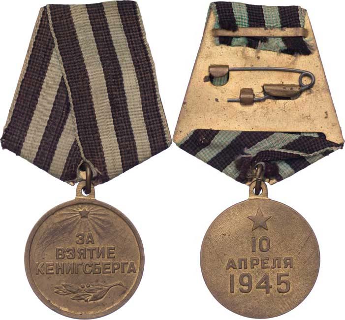 Medaile za dobytí Königsbergu, Herf.3.33, Planeta.196, vybledlá původní stuha na mosaz. kolodce