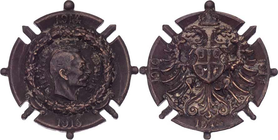 Petar I. - pamětní kříž na Velkou válku 1914 - 1918, BB.135, C-M.mcm.08, bez závěsného kruhu, bez stuhy