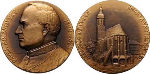 Uchytilová - hudební skladatel Pavel Křížkovský 1961 - poprsí zleva, opis / chrám Nanebevzetí Panny Marie, opis, Sign., patinovaný bronz 60 mm, BK.6 (100ks) R!