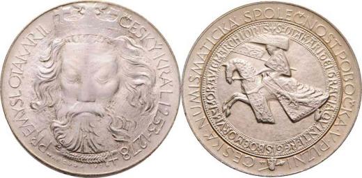 Harcuba - 600 let úmrtí Přemysla Otakara II. 1978 - korunovaná hlava zpředu, opis / replika pečeti a opis, Sign., Ag900, 40mm, 29.110g, BK.6, patina