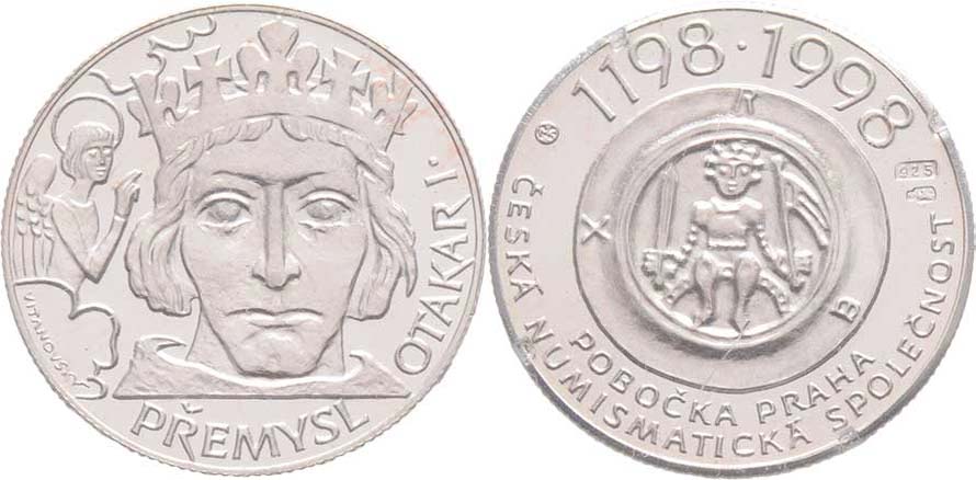 Vitanovský - 800 let korunovace Přemysla I. 1998 - korun.poprsí zpředu, anděl, opis / replika brakteátu, opisy, Sign., Ag925, 20mm, 4.353g (15 ks), kapsle RR!