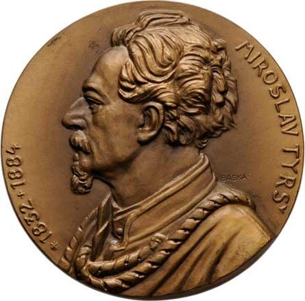 Miroslav Tyrš (1832 - 1884) b.l. - poprsí zleva, opis, Sign., patinovaný jednostranný bronz 60 mm
