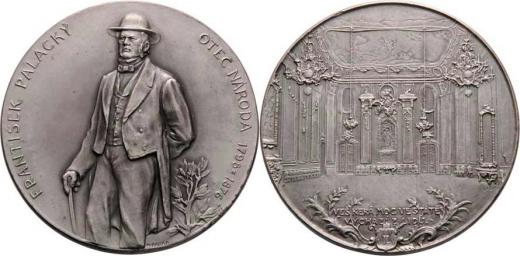 František Palacký - Kroměřížský sněm b.l.(1948) - postava mírně zleva, opis / sněmovní síň v Kroměříži, vavříny, nápis, Sign., patinovaný hliník 60 mm