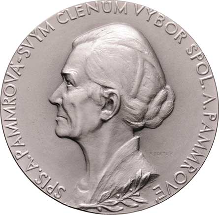Anna Pammrová, spisovatelka b.l. - portrét zleva, opis, Sign., patinované Ag925, 40mm, 28.492g, pouze 10ks, NL.2005/2 RRR!