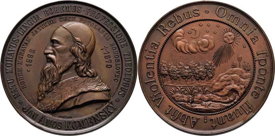 Jan Amos Komenský - 300 let narození 1592/1892 - poprsí zleva, trojitý opis / krajina, latinský opis, Sign., bronz 45mm, 40.125g, MZČ.183/10, PZ.141, pat.