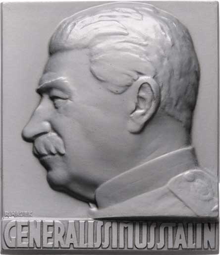 Generalissimus Stalin zleva, nápis, b.l. (1949), Sign., jednostranný eloxovaný hliník 53x63 mm