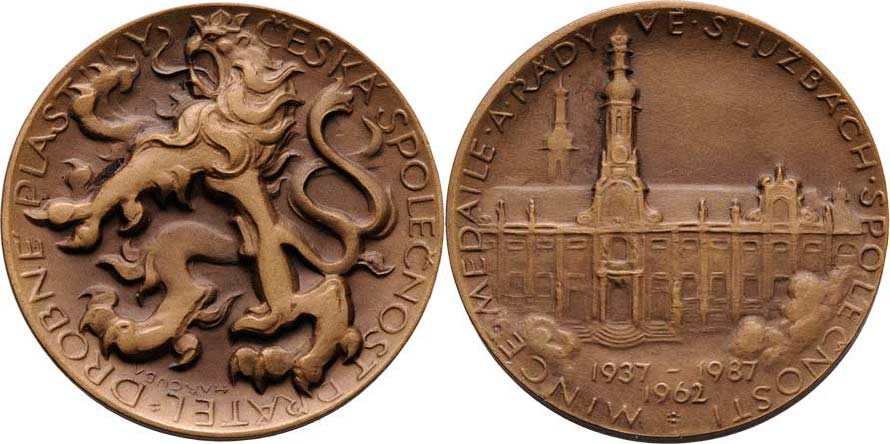 ČSPDP - menší bronzová medaile na 50 let spol. 1987 - Loreta v Praze na Hradčanech, vročení, opis / český lev, opis, Sign., 38mm, 28.045g, pěkná patina