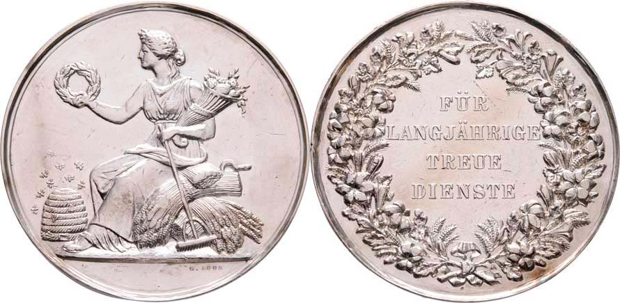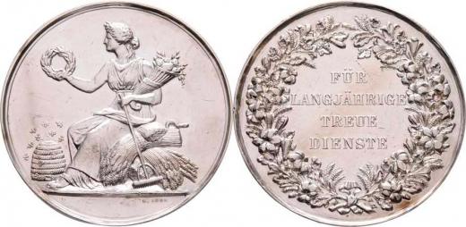 Za dlouholeté věrné služby b.l. (cca 1830) - sedící Ceres, hospodářské atributy / 4-řádk. nápis ve věnci, Sign., Nepunc., Ag 42mm, 29.250g, hr., rysky