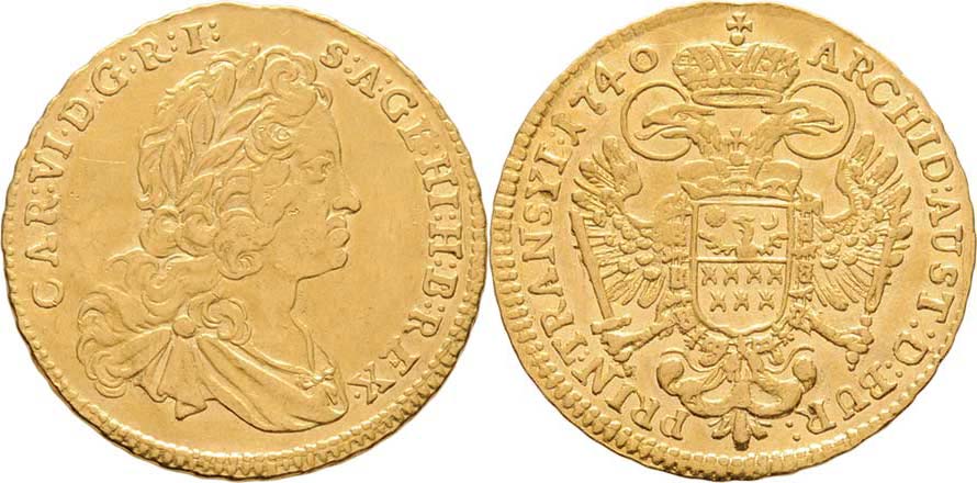 Dukát 1740, Karlovský Bělehrad, M-A.240, Fr.520, 3.448g, nep.exc., nep.zvlněný, dr.rysky R!