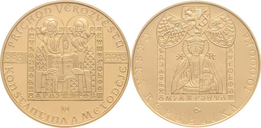 10000 Koruna 2013 - Konstantin a Metoděj, KM.143 (Au999, 31.11g, pouze 9.000 ks), kapsle, etue, karta