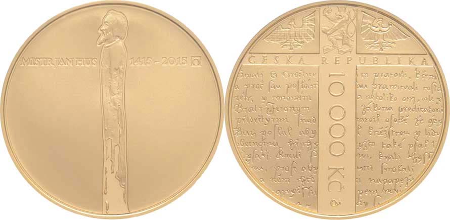 10000 Koruna 2015 - Mistr Jan Hus, KM.nové (Au999, 31.11g, pouze 6.300 ks), kapsle, etue, karta