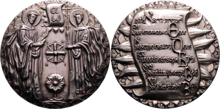 Katolická charita - ekumenický překlad Bible 1987 - Cyril a Metoděj, opis / zářící citát z Bible v šesti řečech, český opis, Sign., Ag900, 70mm, 297g, LŠ.352