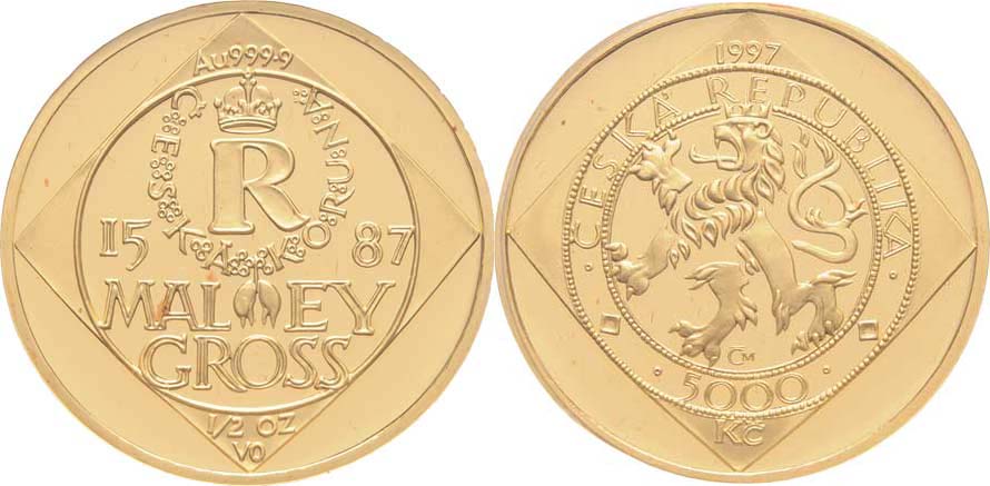 5000 Koruna 1997 - české mince - Malý groš, KM.20 (Au999, 15.55g, pouze 1.500 ks), kapsle, etue