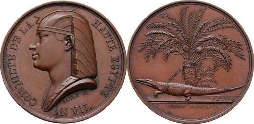 Galle - AE medaile na obsazení Horního Egypta (1799) - Napoleon jako faraon, písmo / krokodýl na řetězu u palmy, Sign., 35mm, 19.905g, Zeitz.9, krásná patina