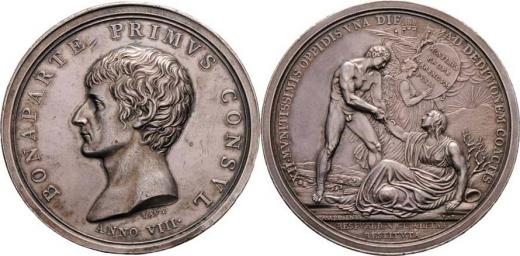 Lavy - založení Cisalpinské republiky An.8 (1800) - poprsí zleva, opis / Herkules pozvedá Itálii, písmo, Sign., Ag 53mm, 73.261g, Julius.802, rys., patina RR!
