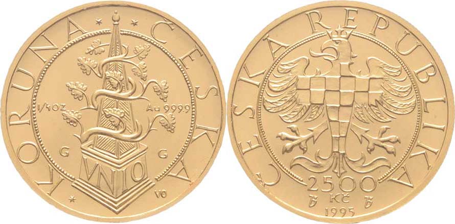 2500 Koruna 1995 - mince Moravských stavů, KM.19 (Au999, 7.77g, pouze 2.000ks), kapsle, etue