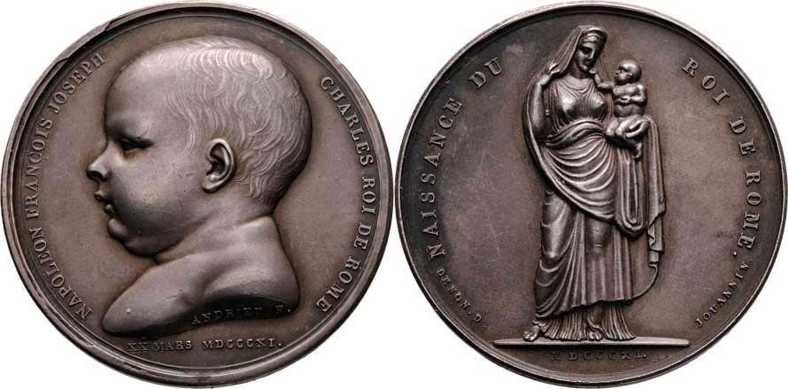 Narození Napoleona II. - krále římského 1811 - :AR41 dětský portrét, opis/císařovna s dítětem, opis, Sign, 41mm, 37.481g, Zeitz.120, Julius.2431, punc."ARGENT"
