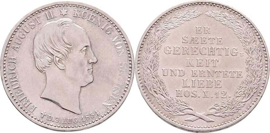 Friedrich August II. - AR úmrtní medaile 9.8.1854 - poprsí zprava, opis / 7-řádkový nápis ve věnci, Nesign., Ag 28mm, 8.185g, nep.hr., nep.rysky, téměř