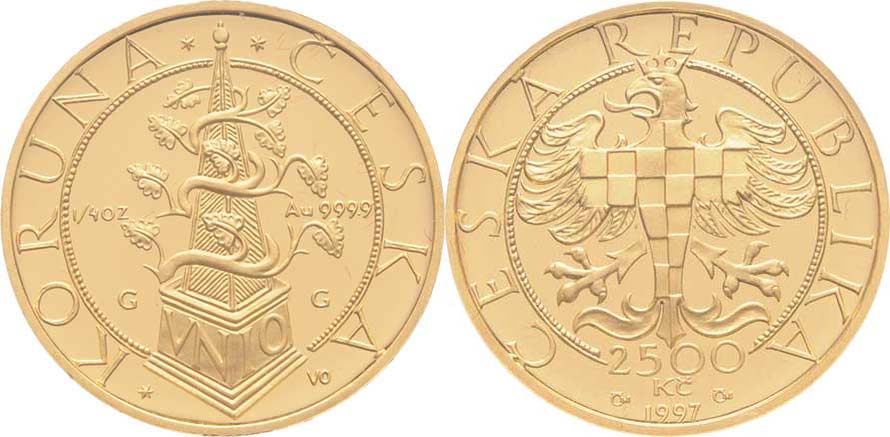 2500 Koruna 1997 - mince Moravských stavů, KM.19 (Au999, 7.77g, pouze 3.000ks), kapsle, etue