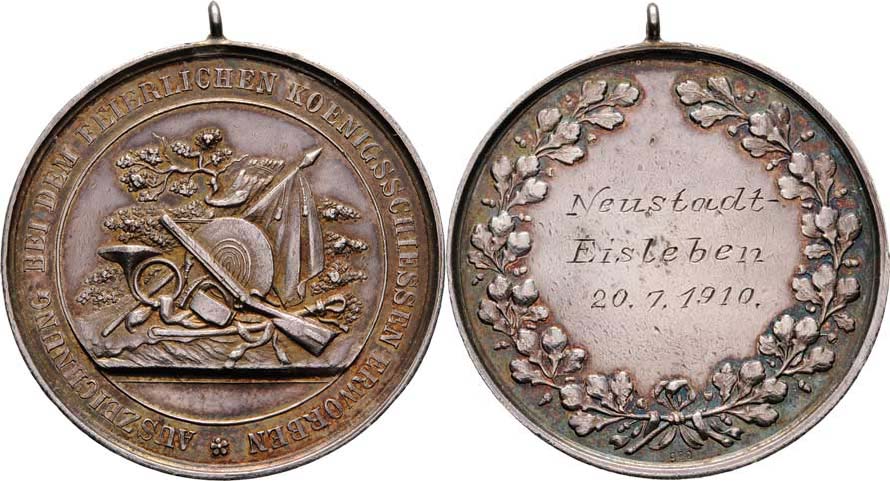 Neustadt-Eisleben 1910 - terč, pušky, prapory, opis / dubový věnec a rytý nápis, Nesign., Ag990, 36mm, 15.145g, původní přiletov. ouško, dr.hr., rysky, pat.