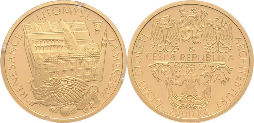 2000 Koruna 2002 - Zámek Litomyšl, KM.61 (Au999, 6.22g, pouze 3.097 ks), kapsle, etue, karta