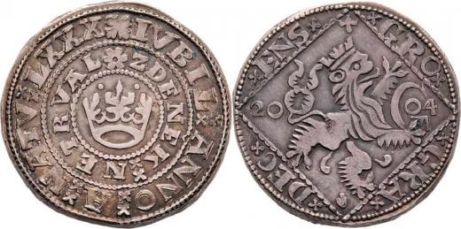 Zdeněk Netrval - AR jeton na 80.narozeniny 2004 - koruna, dvojitý opis / český lev s písm."G", opis do čtverce, Nesign., Nepunc., Ag900, 24mm, 13.133g R!