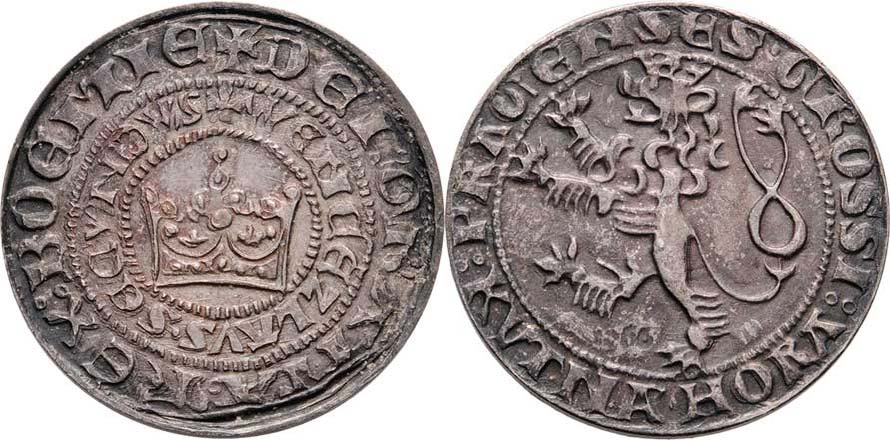 Replika pražského groše Václava II. 1966, Nesign., Nepunc., Ag 25mm, 5.798g, vada razidla, patina, původní etue s nápisem "Česká národní rada"