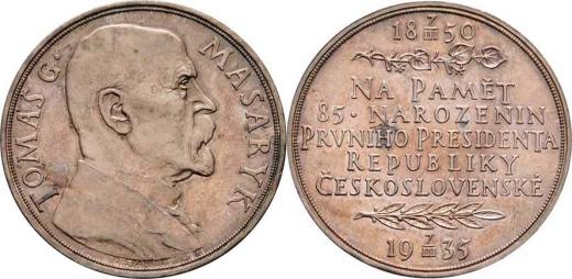 Španiel - na 85.narozeniny 1935 - poprsí zprava, opis / 7-řádkový nápis, ratolesti, Sign., lesklé Ag, 32mm, 14.862g, Fl.41d, Nov1.100a, patina, původ.etue