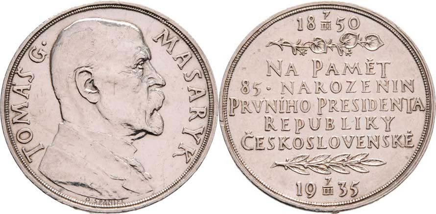 Španiel - na 85.narozeniny 1935 - poprsí zprava, opis / 7-řádkový nápis, ratolesti, Sign., Ag987, 32mm, 14.875g, Fl.41d, Nov1.100a, nep.hr., nep.rysky