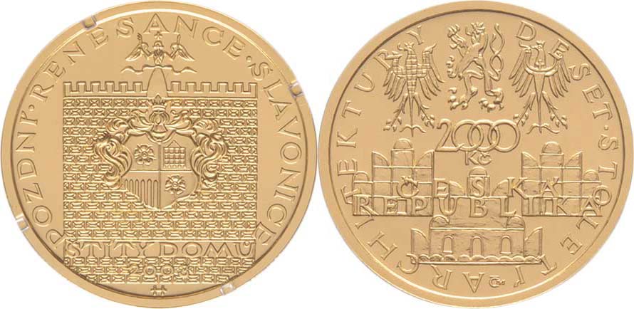2000 Koruna 2003 - Štíty domů ve Slavonicích, KM.68 (Au999, 6.22g, pouze 1.994 ks), kapsle, etue
