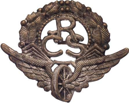 ČSD - čepicový odznak s monogramem RČS (cca 1918 - 1920), Nesign., postř.mosaz 60x49 mm s upín. patkami, jedna patka ulomena, postříbření částečně setřené