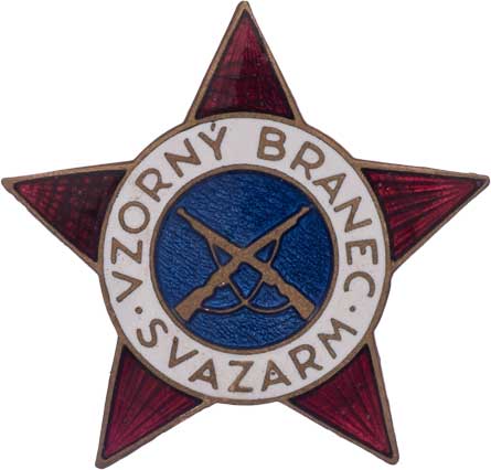 Svazarm - odznak Vzorný branec, Nesign., zlacený smaltovaný bronz 42 mm se šroubem