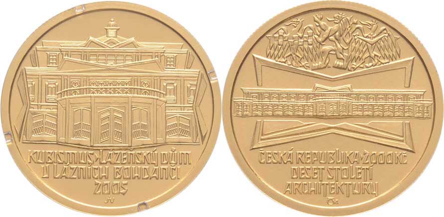 2000 Koruna 2005 - Lázeňský dům v Lázních Bohdaneč, KM.87 (Au999, 6.22g, pouze 1.997 ks), kapsle, etue, karta