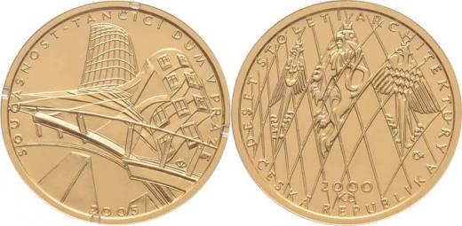 2000 Koruna 2005 - Tančící dům v Praze, KM.88 (Au999, 6.22g, pouze 1.996 ks), kapsle, etue, karta