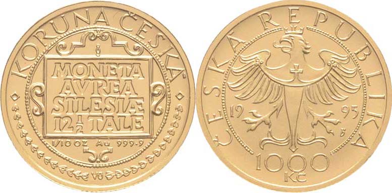1000 Koruna 1995 - mince slezských stavů, KM.18 (Au999, 3.11g, pouze 2.000 ks), kapsle, etue
