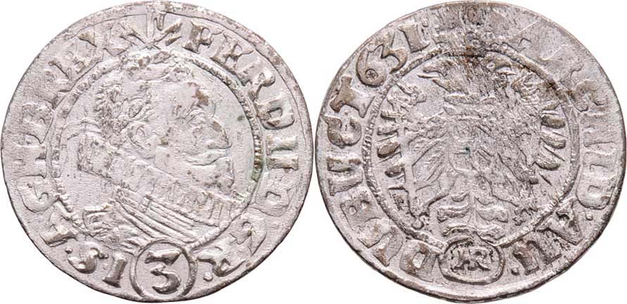 3 Krejcar (1)631, Vratislav-Riedel, MKČ.1023, podobný jako ČS.579, 1.702g, nedor., skvrny, patina