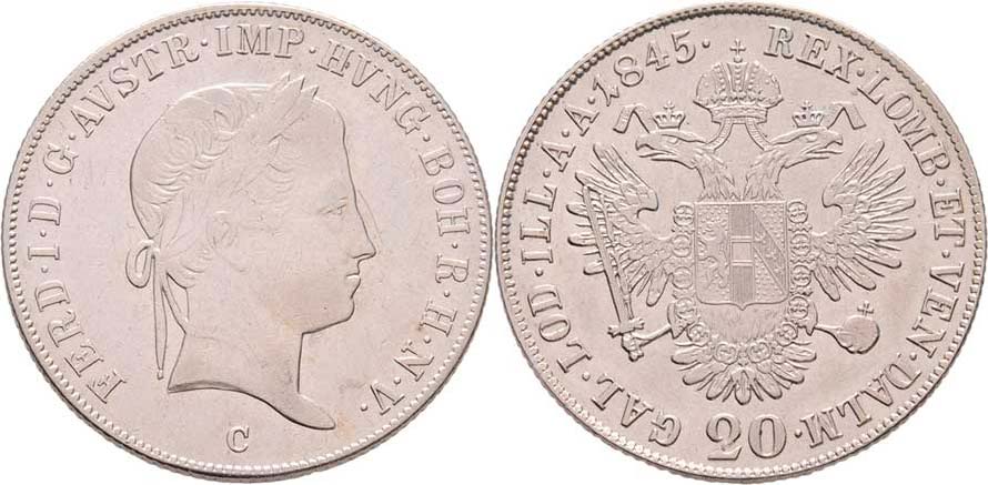 20 Krejcar 1845 C, Praha, 6.680g, nep.hr., nep.rysky, pěkná patina