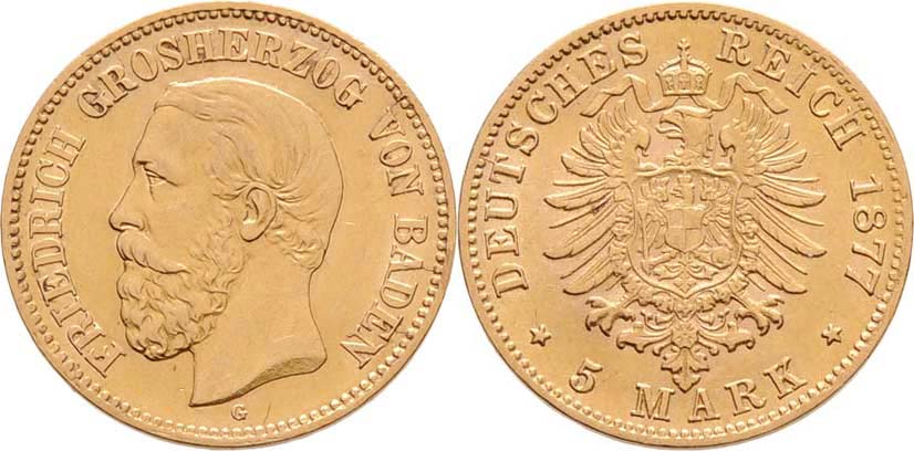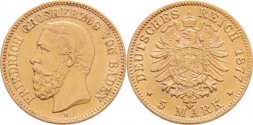 5 Marka 1877 G, KM.266 (Au900, 345.000 ks,jediný ročník), 1.986g, hr., nep.rysky, pěkná patina R!
