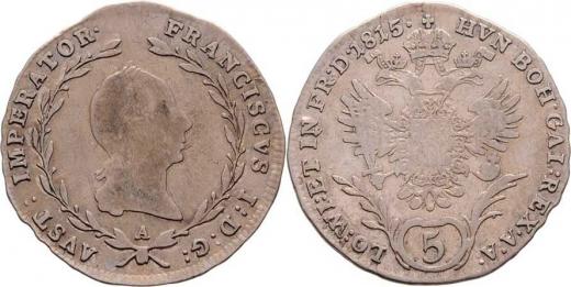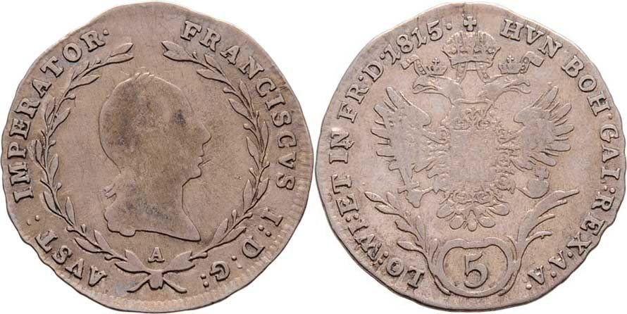 5 Krejcar 1815 A, Vídeň, 2.147g, nep.hr., nep.rysky, pěkná patina