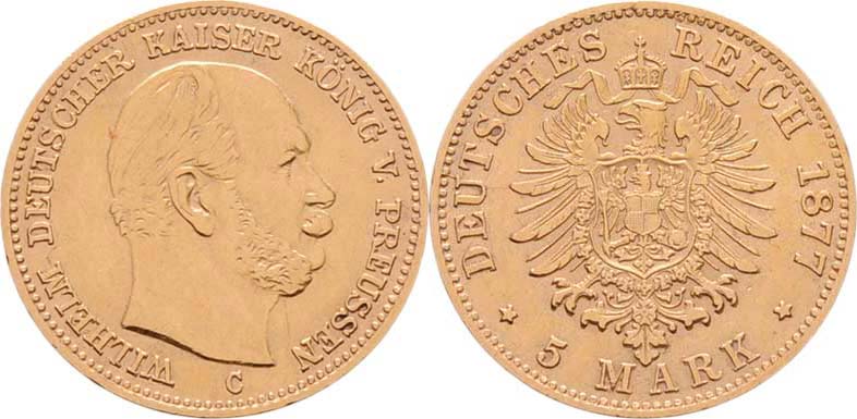 5 Marka 1877 C, KM.507 (Au900), 1.971g, nep.hr., nep.rysky, pěkná patina R!