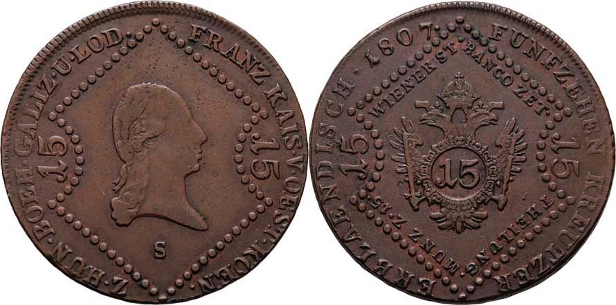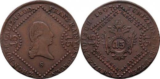 Cu 15 Krejcar 1807 S, Smolník, 13.112g, nep.exc., nep.nedor., pěkná patina