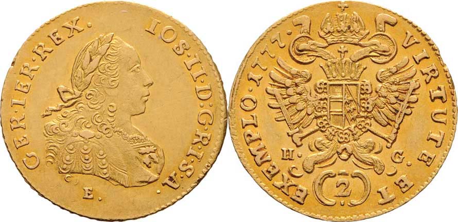 2 Dukát 1777 E/H-G, Karlovský Bělehrad, P.2, KM.2085, 6.956g, dr.hr., nep.rysky, pěkná patina R!